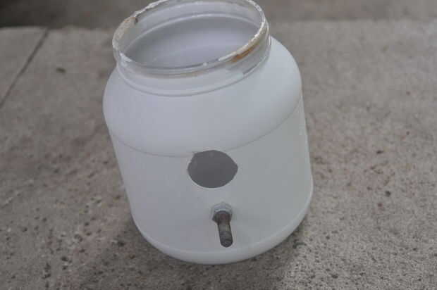 Sacar la tapa y el tarro de pintura. Blanco se ve muy bien, y lo tenía todo así que decidí utilizarlo. Creo que se veía bastante bien al final. Espere a seco y luego su listo para colgar en su casa del pájaro.