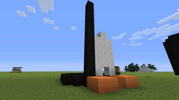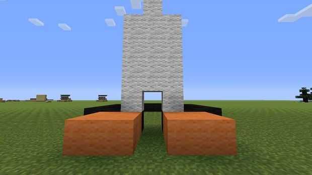 Ahora sigue la imagen y traer bloques de lana blanca 5 alto 3 de ancho y 6 alto en el medio. A continuación, llevar las paredes negro 11 superior.