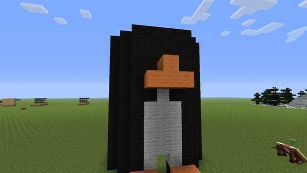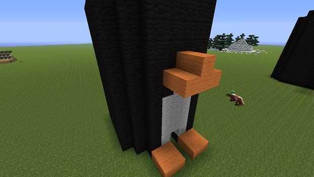 Para el pico ir a 1 cuadra arriba del blanco y lana naranja 3 cuadras y sobresale 2. Luego poner 2 cuadras en el centro de la parte plana del pico. Luego ir una cuadra arriba del pico y colocar bloques de lana blanca 2 1 cuadra aparte para los ojos.