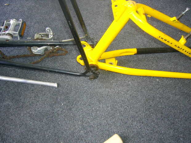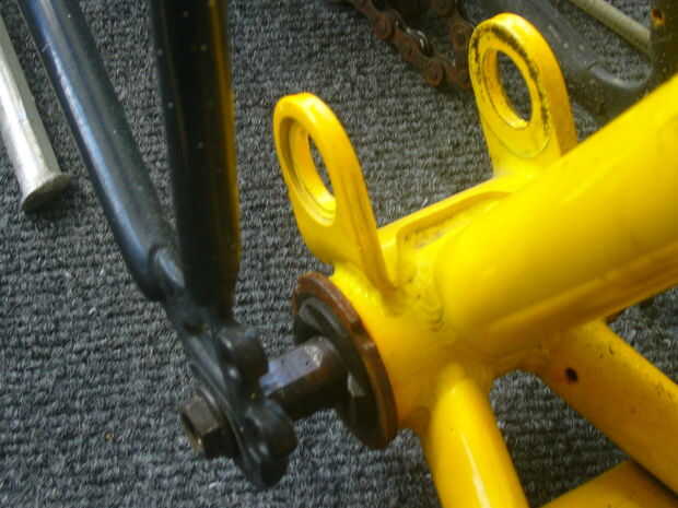 Para alinear el brazo, colocar la rueda y doble como se muestra - la rueda debe estar en consonancia con el tubo del asiento. Una vez alineados, apriete el brazo.
