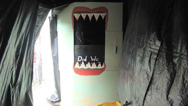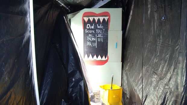 Vas a marcar en el tablero y la chica detrás de ella tira un pin, el tablero de tiza cae y ella libera sangre coagulación screeeech... Este susto susto "final" tiene cada grupo, incluso los pasado a caminar tenía la caída de la "pizarra" porque hay un agujero que el actor puede ver a través. ¿YA ha terminado justo.? .. tal vez no, a veces el payaso y o un zombie le como paso a través de la puerta! O Michael Meyers puede perseguir la calle o zombie escondido por entre los coches aparcados...