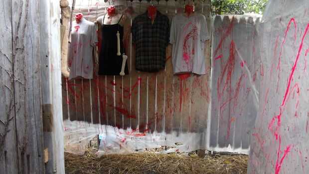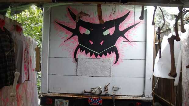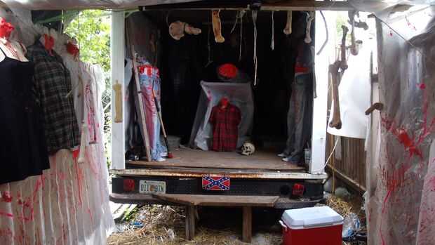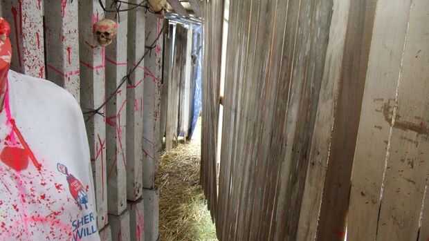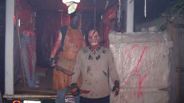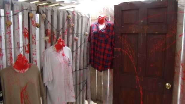 Una vez que entres a esta puerta se cerró de golpe detrás de ti, las paredes están repletas de cuerpos (más maniquíes reciclados) y una puerta de salida está marcada en la pared de extremo (no funciona) se agarraron a su guía y cuando ella grita, volvéis a ver la parte trasera de mi 18' van de carga que se utiliza para el almacenamiento, la puerta vuela para arriba y el guía se tira hacia las luces intermitentes y sierras de corrientes , ella grita "abrir la puerta, abrir la puerta, pero no puede cerrar su clavado! Se corta la garganta de guías y están salpicadas con la sangre (una bombilla pequeña de agua se lleva a cabo junto con el cuchillo) un espíritu servicial abre una sección de la pared y se puede escapar!