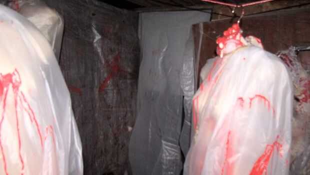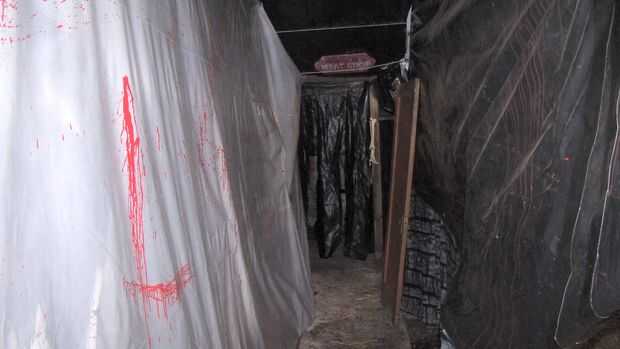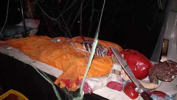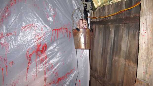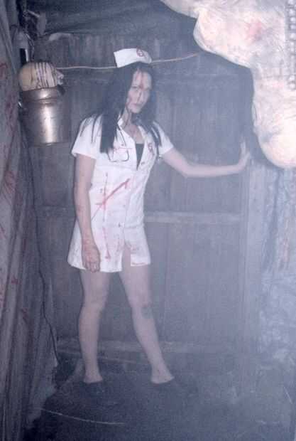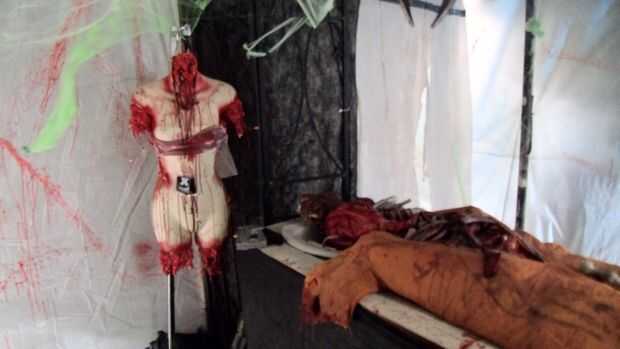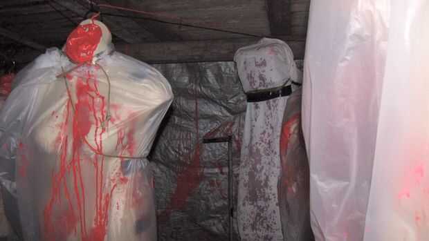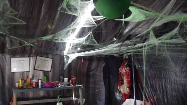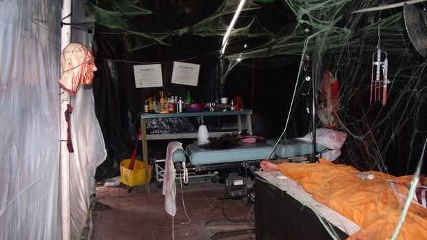 Antes de que encuentra una pared blanca de plástico, sombras gigante paso hacia adelante y hacia atrás pidiendo partes del cuerpo mientras que la sangre y las entrañas golpear la pared, mientras caminas por el pasillo la sombra desaparece y entras en una habitación oscura llenan de colgar los cuerpos, (maniquíes más reciclados) niebla y una brisa fría suministrado por un ventilador de casa reciclado rebote, actor se esconde en un rincón oscuro, esperando el momento justo para asustar a alguien en su grupo , fuera del cajón para carne y en un cuarto de baño horroroso donde otro actor le implora por ayuda y le ruega que no ir más lejos, unos apoyos más cuelgan del techo de la sala siguiente y, a continuación su área de juego en lo dokterz demented.