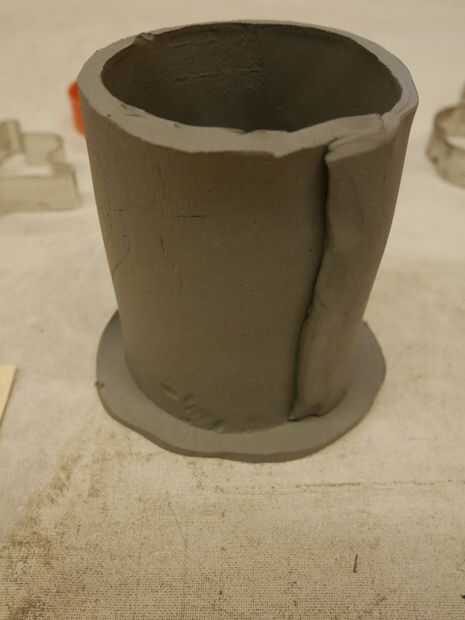 Coloque el cilindro en una arcilla laminados en un poco más grande y girar encima de borde para crear base. Si la leña en horno Asegúrese de haga un orificio en la base para evitar que el aire queden atrapados dentro.
