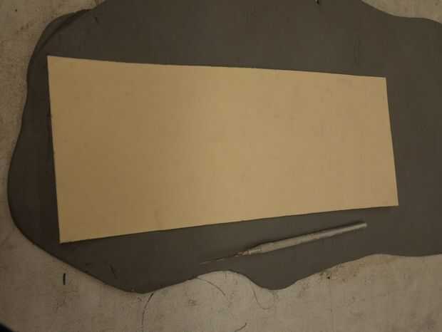 una losa de barro, corte piezas 8 "X 15" al cilindro de la forma del rodillo.