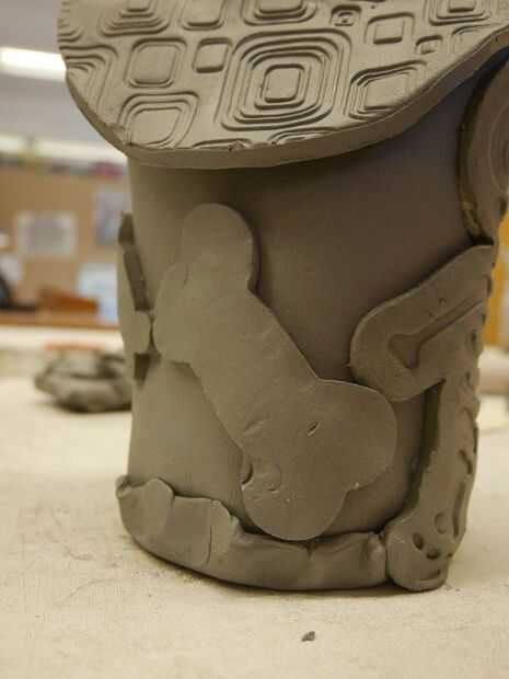 suavemente puntuación (poner rayas en la arcilla) y frotar con slip (diluir un poco de arcilla con agua para crear una textura mantecosa para aplicar sobre la puntuación) antes de pulsar en la manguera.