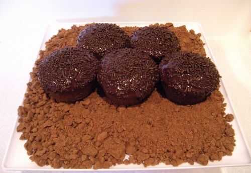 Luego tomar 5 de tus cupcakes helados y espolvoreados y colocarlos en el soporte o placa en dos filas.
