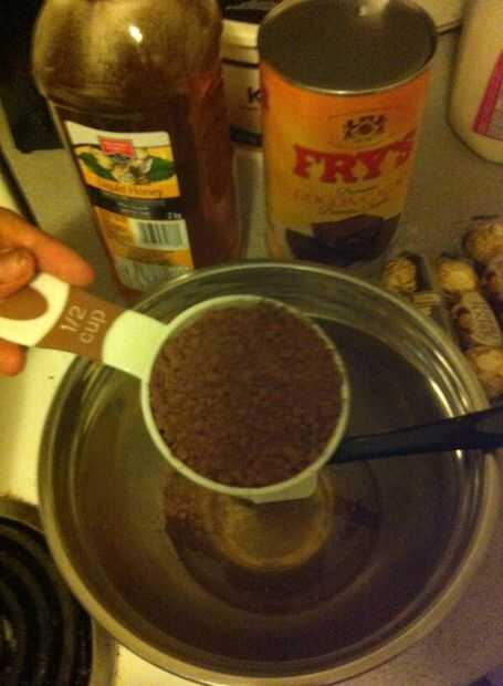 Paso 1: Mezclar la miel y el cacao en polvo sin azúcar