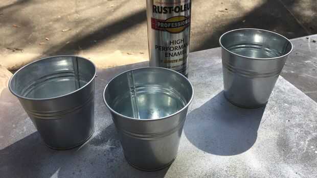 • Rociar la cubeta con una capa muy ligera de pintura en aerosol gris.