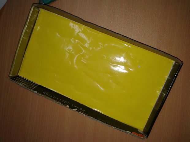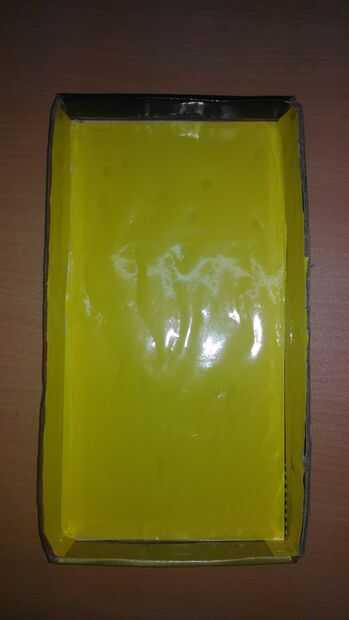 Así que para hacerlo lucir bien, pasta de papel de color (con recubrimiento plástico) a la parte inferior y lateral de la tapa, si no tienes papel con plástico puede poner hoja de talco en el papel (es opcional)