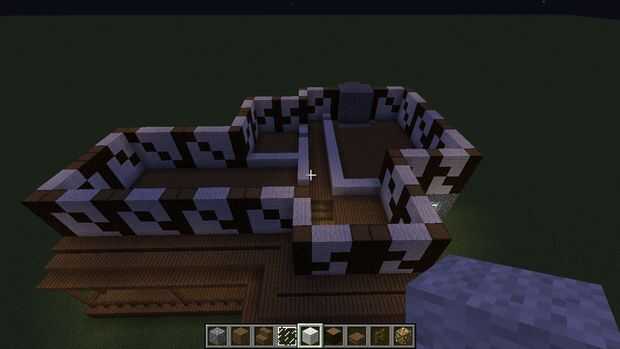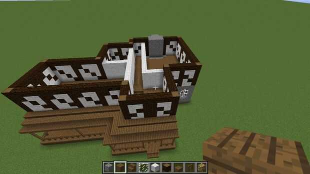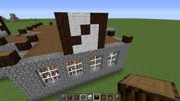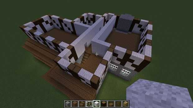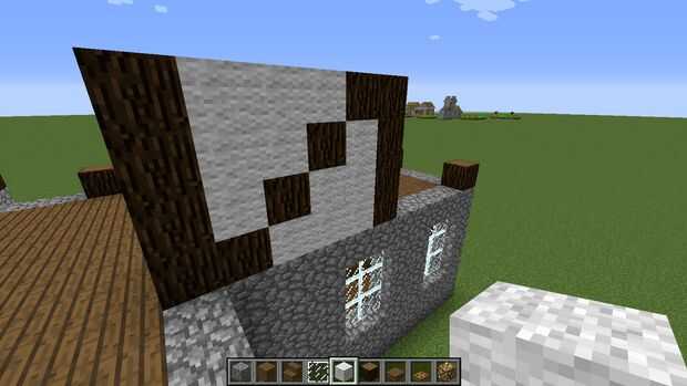 Comience marcando ángulos y fracciones de las paredes con troncos de abeto. Luego rellene los espacios con paneles hechos de troncos de abeto y madera como se muestra en los cuadros 2-4. Poner una capa de troncos de abeto alrededor del borde superior de la pared. Luego marcan las habitaciones como se muestra en el cuadro 5. Traer las paredes a nivel del borde superior. Entonces es hora de decorar las habitaciones.
