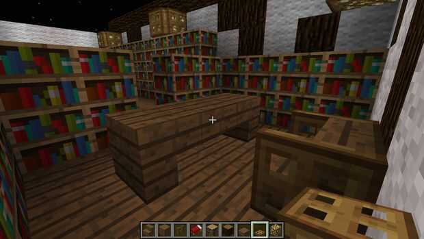 Todas las habitaciones deben tener lámparas de piedra brillante. El estudio debe tener un montón de libros y una librería baja que incluye un escritorio. El dormitorio pequeño debe tener una cama y el dormitorio debe tener una cama doble y algunas macetas.