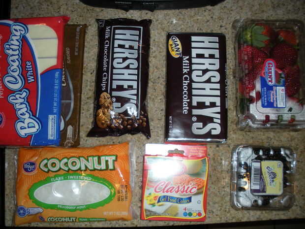 El primer paso es recoger los ingredientes. Para mis bombones decidí usar fresas, moras, virutas de coco, chocolate blanco y chocolate con leche. Se puede utilizar cualquier tipo de fruta te gusta, pero tenga en cuenta que si usas fresca frutas que usted necesitará mantener el chocolate refrigeraron y comen bastante rápidamente. Si desea que sus chocolates a durar más recomendaría usar nueces o frutos secos.