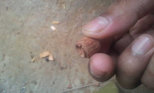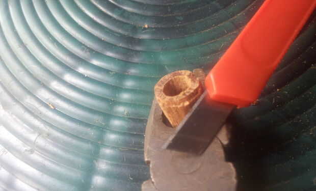 • Corte la parte delantera de la madera para la tapa del auricular montar, utilice el cuchillo pequeño con hoja delgada.