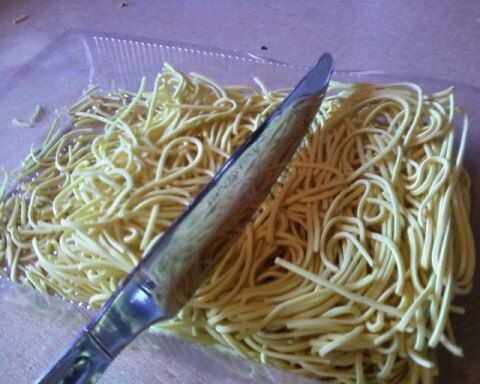 Primero que querrá abrir tu paquete de fideos, y cortar una porción en su taza.