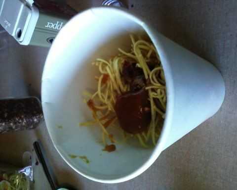 Pasado si usted planea tomar esto a la escuela o trabajo para el almuerzo, usted querrá paquete para arriba bien a tomar junto con usted. Si usted tiene los palillos, empujar el extremo pequeño a través de la ranura bebiendo y coloque la tapa sobre la taza. Los palillos evitará que polvo o especias se derrame hacia fuera si las copas pasa a ser revocada, y tienes utensilios portátiles para donde Comes!.