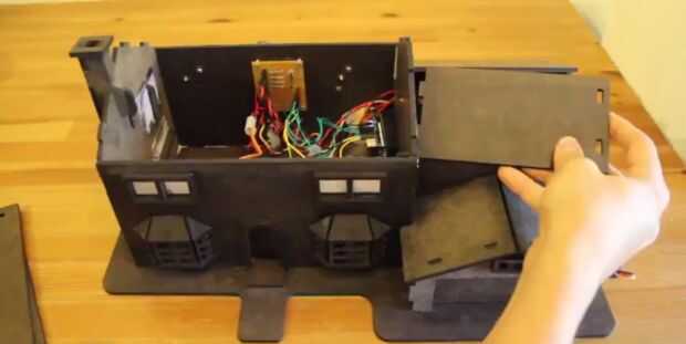 Empecé buscando una "casa" adecuada. Originalmente la idea era el tener el doblez de la casa abajo por lo que puede ser embalado y enviado alrededor de conferencias. Esto me llevó a creer corte del laser era la mejor opción, porque la capacidad de "snap fit" no sólo es robusto pero portátil.