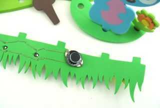 Conectar el sensor de sonido también es bastante fácil. Sólo conéctelo a la cubreluz por coser los agujeros como si fueron colocar otro panel Atamborado. Que atribuimos a la parte posterior de la cobertura frente al cubreluz.