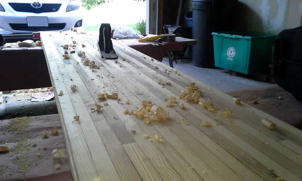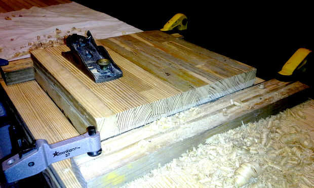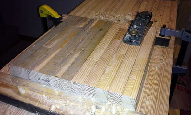 Tuve al plano de largo plazo de la bolera sube mucho. Llevó para siempre. Mi padre me ayudó con todo el proyecto. Lo tengo en una sola toma de cepillado de acción arriba. Estaba muy contento de ayudar sólo a un día del cepillado. Te recomiendo buscar acceso a una lijadora grande o cepillo para limpiar la superficie. Tomó un par de semanas para poder hacerlo después del trabajo con un par de planos de la mano del viejo. Sobre todo utilicé un viejo Stanley 606 Bedrock. Funcionaba mejor que los nuevos aviones más pequeños.