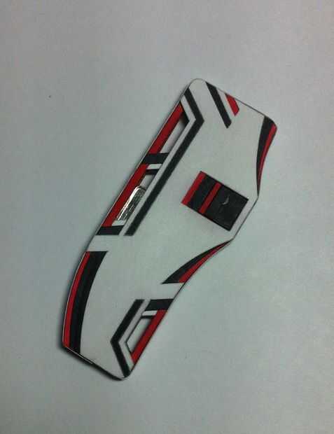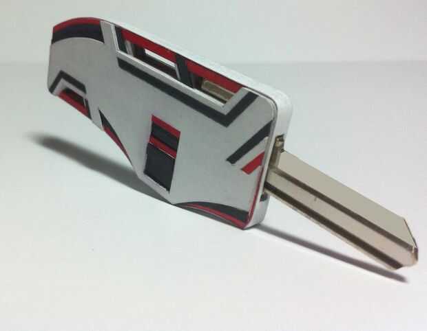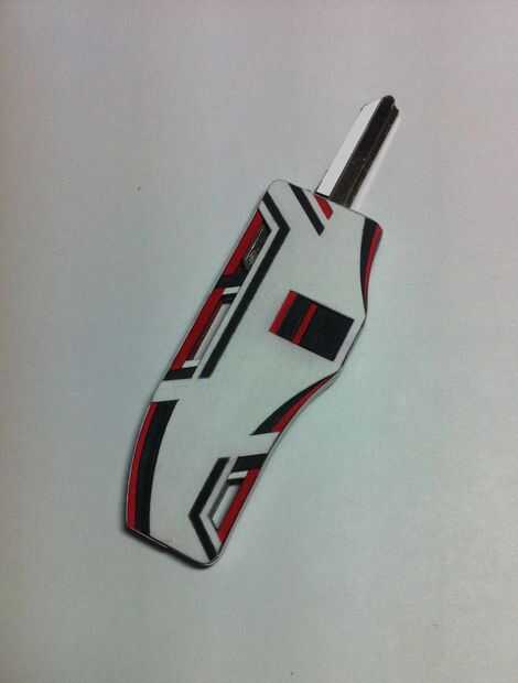 As con la primera versión, fue construido de una idea donde se colocaba la llave de la casa en una caja (hecha de papel común de la tarjeta) y con algún tipo de empuje de un botón, la clave se asomen exponiendo los dientes de la llave.
