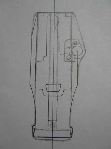 A buena semana de pensamiento y un par de nuevos bocetos, finalmente surgió con un diseño mucho más simple y mucho más agradable. Tenía un mecanismo de liberación del botón como cualquier aguja real tendría.
