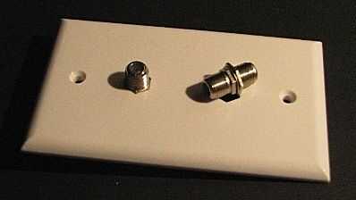 Para el titular (a la izquierda en la foto) amplió el agujero inicial con un taladro de 3/8 bits y un archivo rat-tail hasta que pude colocar un acoplador coaxial cómodamente (o usted puede martillo en). Aseguró con algunos J-B Weld.