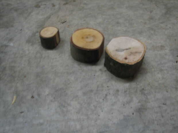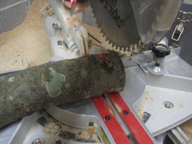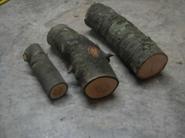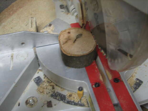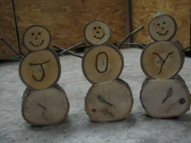 Primero cortar los troncos en 2" espesor (cortar tantas piezas como quieras hacer muñecos de nieve)