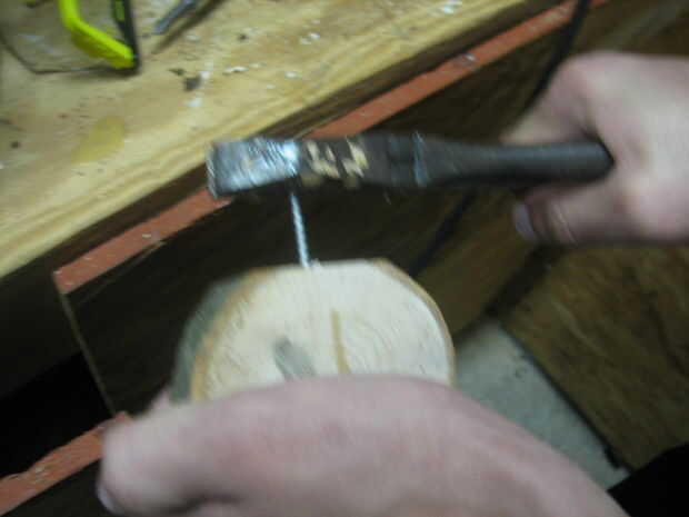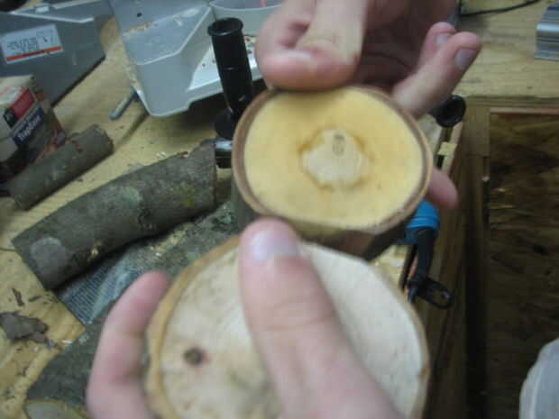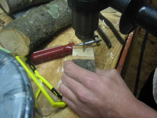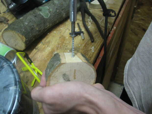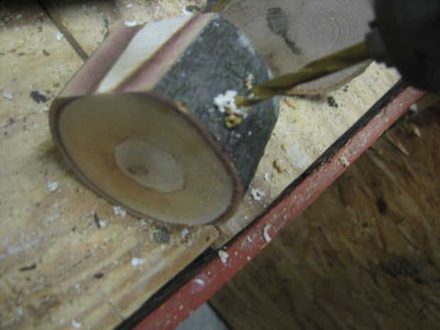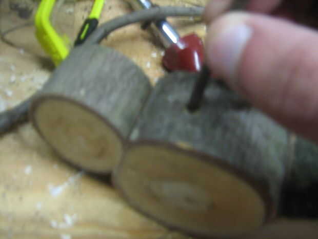 A continuación se. que tendrá que taladrar los agujeros en la pieza central para las ramitas para más tarde.