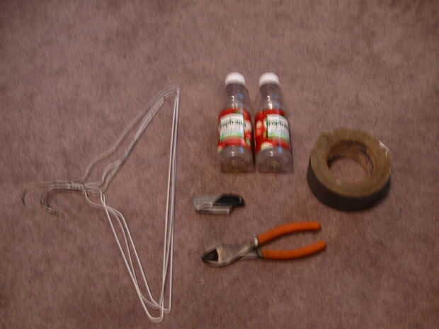 Mi primer instructable. Sólo una casa mariquita simple hecha de botellas de jugo de plástico, perchas de alambre y cinta aislante!