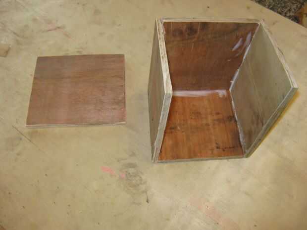 Esto es donde se han cortado todas las piezas a tamaño y empezando a pegar y clavar los lados en la parte inferior.