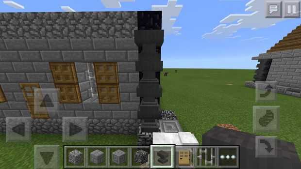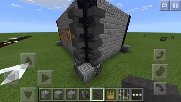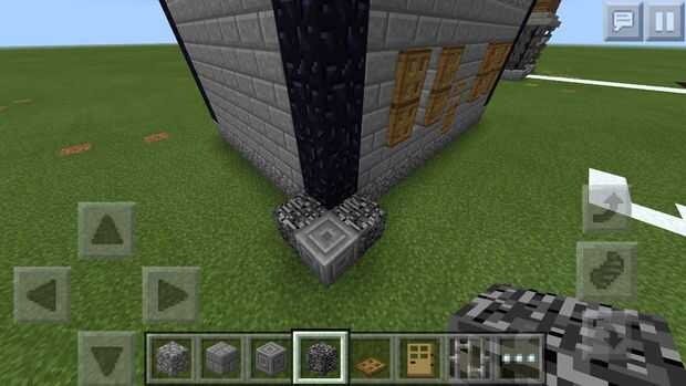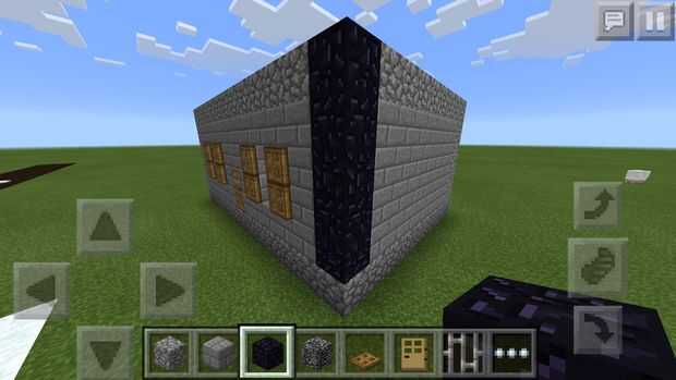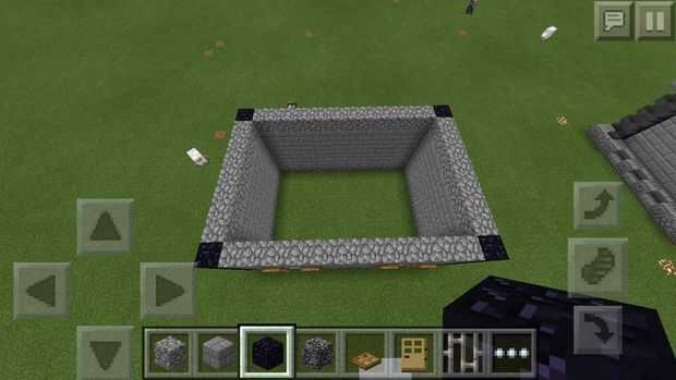 D. Tire de sus yunques. Ahora puede colocar 4 yunques encima de cada roca. Solamente 4, quiere dejar un ladrillo de obsidiana expuesto en la parte superior de su edificio. (Por favor disculpe Sr. Sheep en la imagen)