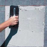 Paso 2: Con el lado de la muesca en V de la llana aplique mortero adhesiva para establecer una profundidad adecuada y uniforme.