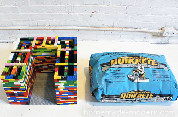 Usé los clásicos ladrillos LEGO para hacer el molde. Me asaltaron el ático de la casa de mis padres para recuperar mi escondite de infancia y comprar unos nuevos conjuntos. Compra todos los ladrillos nuevos para este proyecto podría ser un poco caro, así que estoy trabajando en un post que muestra cómo se podría emitir la mesita de noche en secciones para reducir la cantidad de LEGO necesitada.