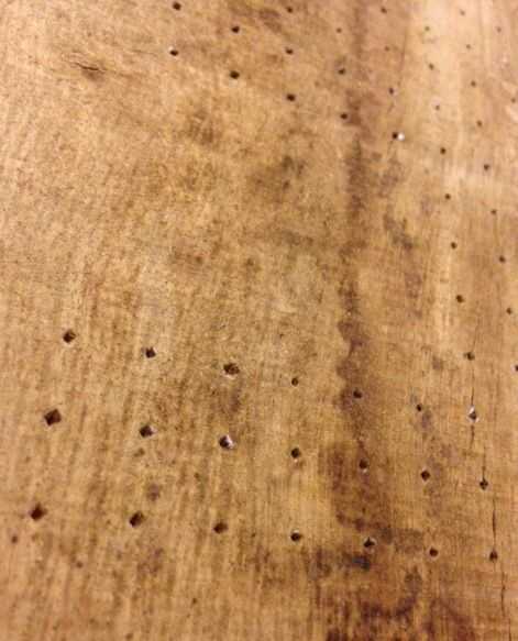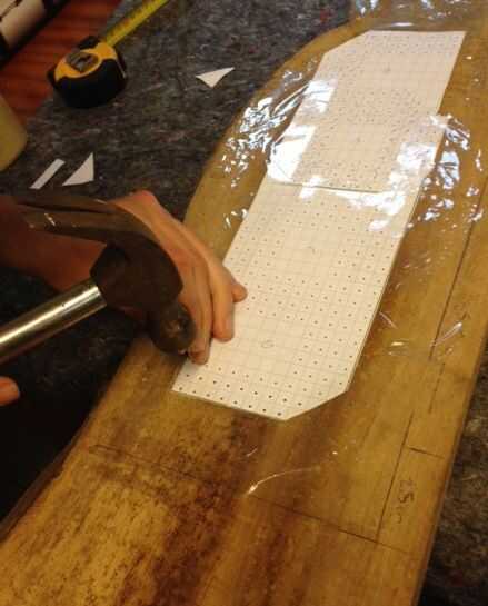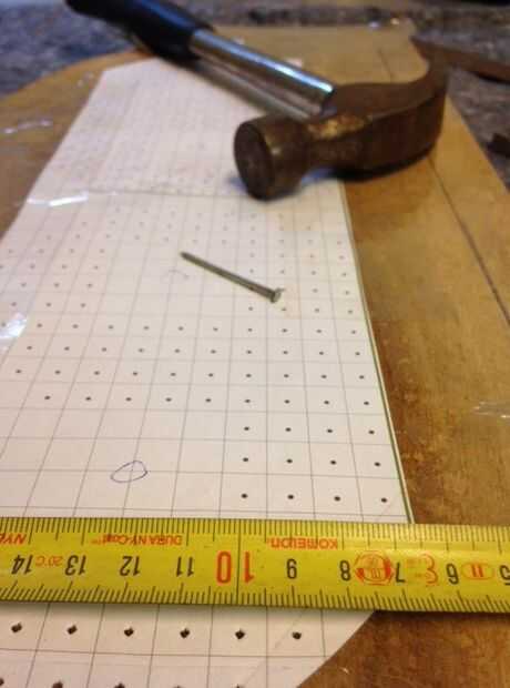 I sustituirá todo el capital de ' O 'con pequeños puntos de ronda'.' que me centré en las células. Después de la impresión y grabación de los dos números en la tabla, pegué cada punto con un martillo/clavo para dejar pequeñas marcas en la madera. Asegúrese de que la alineación de los números es correcta. En holandés tenemos una rima "meten es weten", que significa "medir es conocer".
