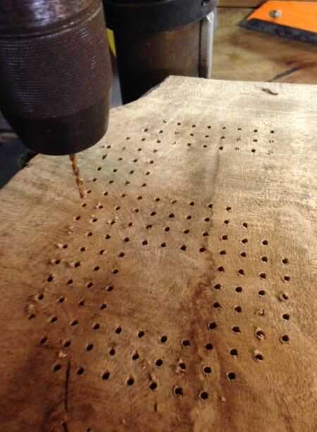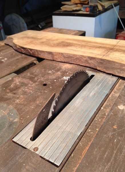 Antes de empezar con el taladro de banco, corté el tablón al tamaño correcto por lo que era más manejable mientras que perfora.
