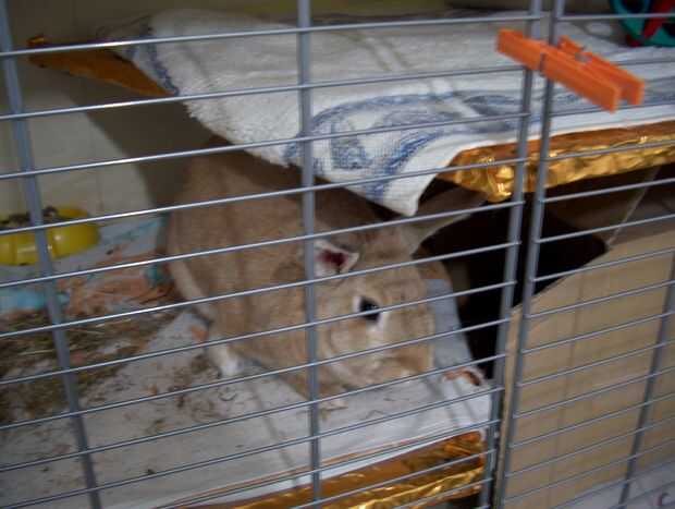 La lámina de cobre que ves en la foto fue pensada para evitar que el conejo masticando los bordes de los estantes. La broma es sobre mí. Ahora el cobre está en ruinas pero los estantes están intactos.
