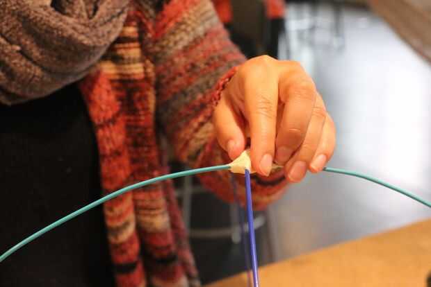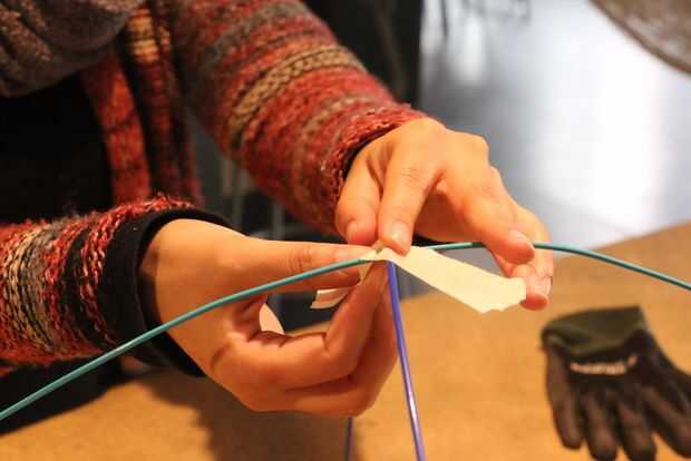 Unir los dos arcos con la cinta adhesiva, pasando la cinta justo en la parte en la tienen contacto, para se mantengan juntos y den estabilidad.