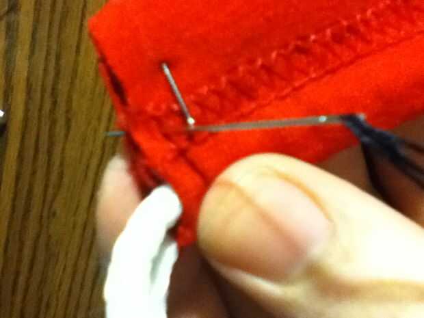Comenzando justo debajo del dobladillo con la cadena a través de él, coser los dos lados juntos todo el borde.