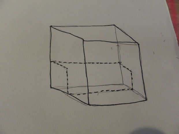 a continuación, medimos cómo queríamos que encaja en el borde, teniendo en cuenta el hecho de que queríamos para arriba del suelo en las piernas para almacenamiento extra debajo. Cortamos las esquinas.