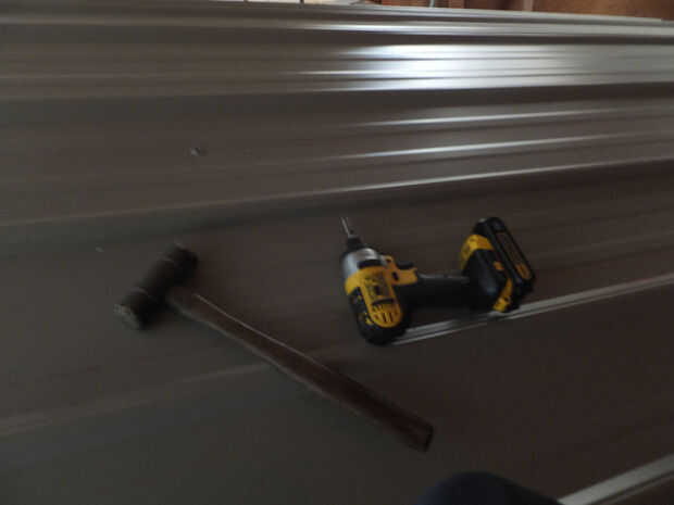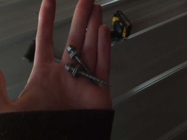 se necesita una tiza línea (o hilo regular), un taladro o de impacto y tornillos. éstos tienen extremos raros que 'pre taladro' sus propios agujeros y Junta Arandela algo en ellos que los hace herméticos. un martillo y un clavo robusto realmente ayudan mucho también.