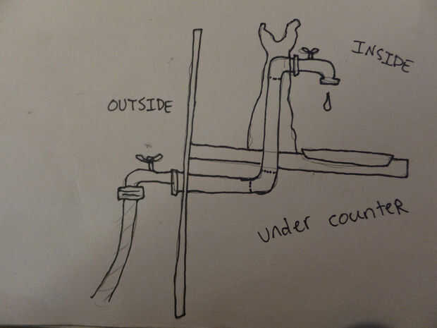 FREGADERO: hemos decidido ahorrar espacio y dolor de cabeza por no instalar un fregadero. en cambio, utiliza tubo de cobre y plomo libre de tuberías y creó un grifo con un protector de goteo por debajo. Aunque no hay ningún drenaje, es más versátil que un fregadero. apenas resbale una tina debajo de a lavar los platos. se utilizó una manguera de agua potable para conectarlo a un grifo al aire libre, también podemos instalar un depósito al aire libre si queríamos fuera de la red de almacenamiento de agua para un lugar permanente de semi. soldar tubo de cobre es realmente fácil, solo practica un poco primero.