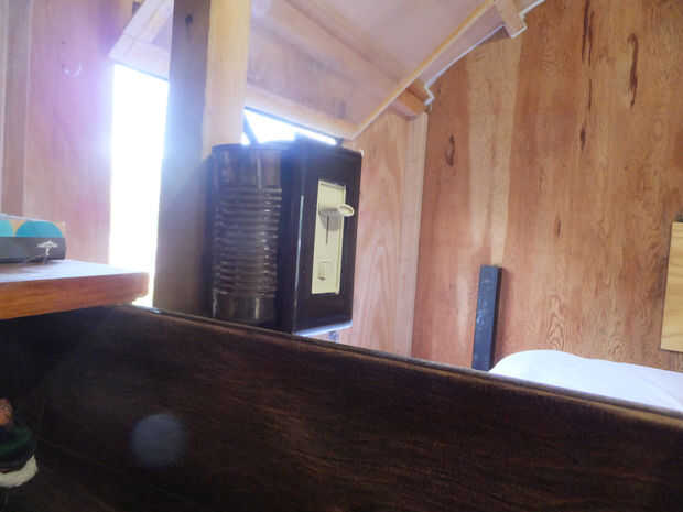 ELÉCTRICO: minimalista. hay un agujero en el estante debajo de la cama que permite una extensión a través de (de la energía de la rejilla). está conectado a una regleta. Contamos con una dedicado luz con una bombilla led en el centro del techo, que tiene una cuerda fija que se conecta a la regleta. hay espacio en el cuadro de la lengua de un banco de baterías de ciclo profundo, este invierno que nos pasará a un panel solar de pequeño independiente que puede cargar las baterías.