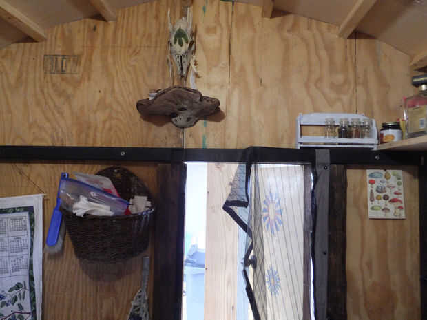 en invierno, nosotros cambiar la nevera por la estufa de leña. llegamos a la pequeña estufa de leña 'camping' acero en ebay por unos $100. dispone de dos reguladores y vino con un calentador de agua pequeña. vino con su propio tubo de 2,75 y herramientas. ajuste regular de 3" tubo de estufa y había hecho el dedal de pared de silicona y dos tapas de latas de #10. su no super eficiente o ingeniosamente construida, pero funciona bien para el pequeño espacio y paquetes de abajo pequeño en verano.