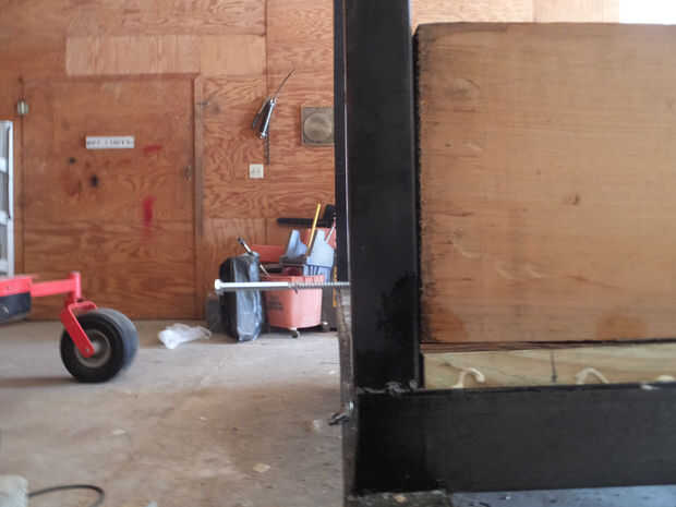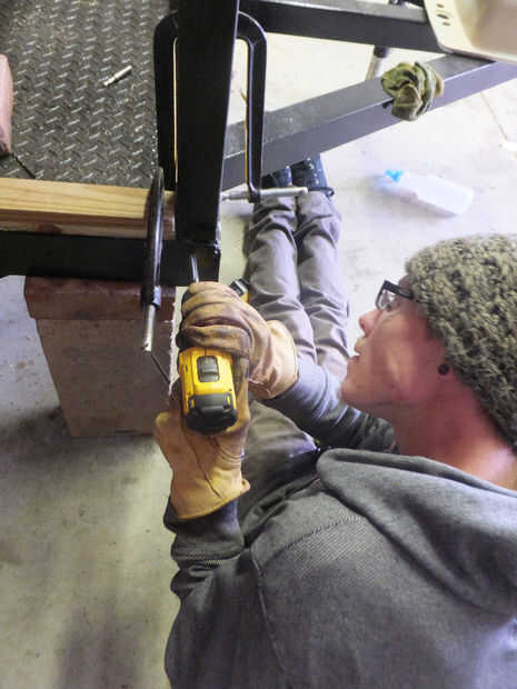 les sujetan entre los postes de acero por los agujeros de perforación y hundirse 6'' tornillos largos de retraso, 2 en cada extremo de cada tabla. también se pegan con pegamento del gorila.