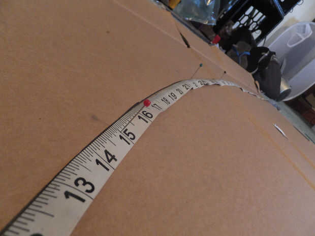 Ahora, tomar una cinta métrica flexible y pin o virar a la esquina de la parte inferior de la plantilla. Coloque la cinta métrica en una mirada agradable, arco uniformemente inclinada. el extremo del arco debe estar en la esquina superior de la plantilla. Anote la medida del arco para más adelante, es importante. es por eso utiliza una cinta métrica. ahora dibuje el arco y recortarlo.