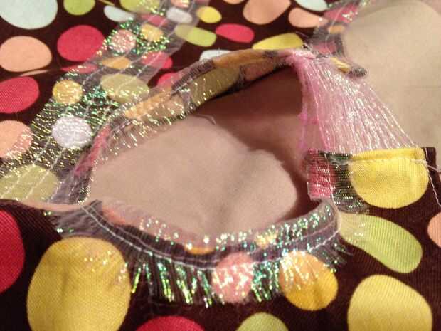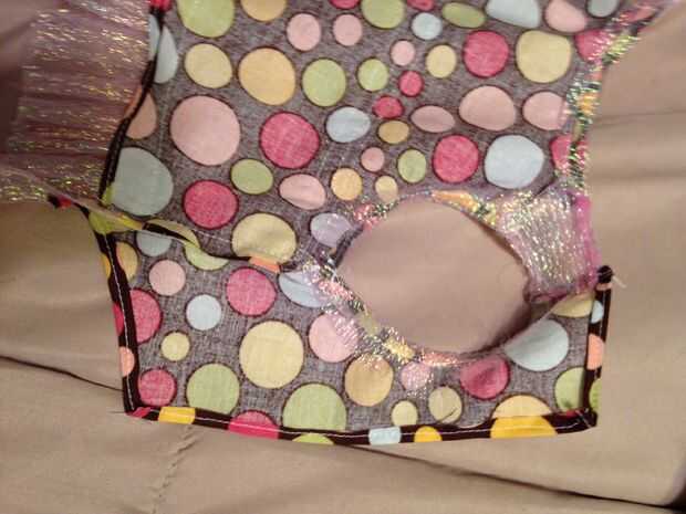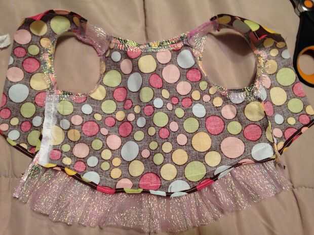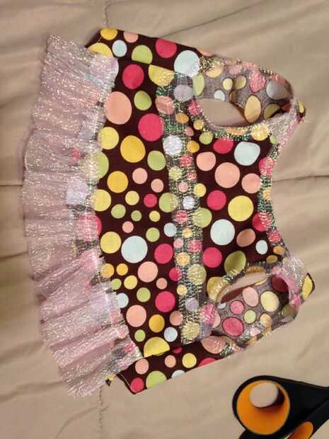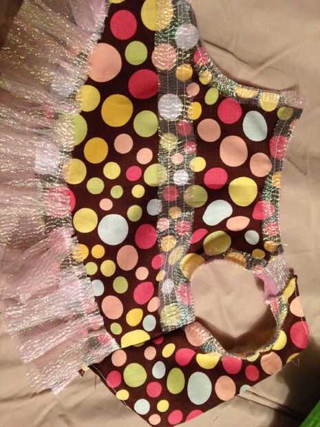 Si tu sisa es demasiado pequeño o no en la posición correcta, lo más probable es su escote es demasiado demasiado pequeños. Esto es lo que me pasó. Decidí tomar el hombro puntos apartes (sólo hacia atrás y pedazos de pecho apartes ligeramente y lentamente cortar puntadas entre ambas telas. Puede utilizar costuras si tiene uno también. Terminé añadiendo una pieza de desecho tul de 1" para alargar las correas. Luego vuelven a unir las correas de hombro pecho y espalda pieza juntos. Esto hizo al instante un vestido demasiado pequeño caber perfectamente mi perro. Podría han utilizado restos lunares impresión para la extensión de la correa de hombro pero quería probar algo diferente mientras que yo estaba pasando el problema de todos modos. PARA TU INFORMACIÓN... Corté el tul al revés en este caso (a lo largo de los granos no perpendiculares) tal ves la enorme diferencia que esto se ve cuando se aplica en el vestido. No es bonito.