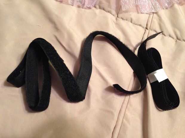 Cuando han unido sus extensiones y les hizo mirar bastante, puede coser en el Velcro. Depende de usted si desea cortar su Velcro en plazas o una tira larga. Una tira larga era simplemente más fácil y rápido para coser para mí.