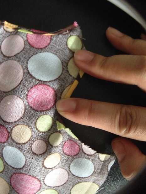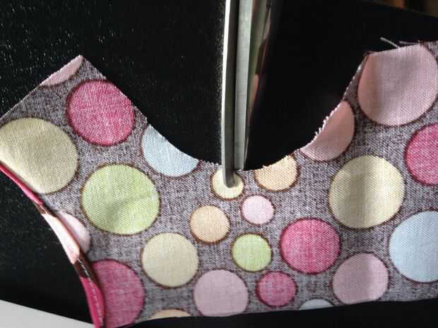 Propina para doblar y cortar alrededor de curvas... Es bastante difícil de plegar y coser alrededor de curvas, por lo tanto debe tomar la tijera y hacer cortes pequeños, una pareja generalmente hará para ayudar a doblar alrededor de curvas por lo que el tejido permanece plano. Un poco de corte generalmente va una manera larga.
