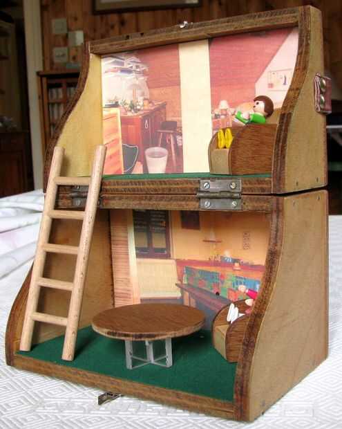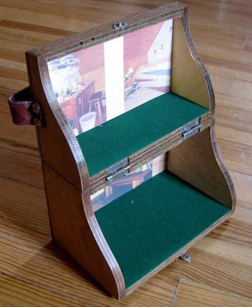 Me inspiré a hacer esto porque mi papá dijo que no podía hacer un taller enel patio trasero así que en vez de eso decidí hacer mi propio taller portátilArtículos:Hoja de madera contrachapadaBisagras miniClavos (o tornillos)batería de 9 voltiosAlambre