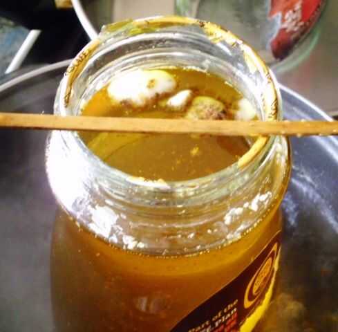 Me ha costado 2 semanas de experimentar en la cocina para venir a lo que creo que es la perfecta relación de 40: 1 o 1 litro de aceite de linaza a 25 g de cera de abejas. Ahora tengo un "Gloopy" cepillo capaz, semi grueso y solución aún colable que se dibuja en la madera, pero deja una superficie de lustre semi seca, dura, si es necesario se pulir un brillo con un paño y alguna grasa de codo.